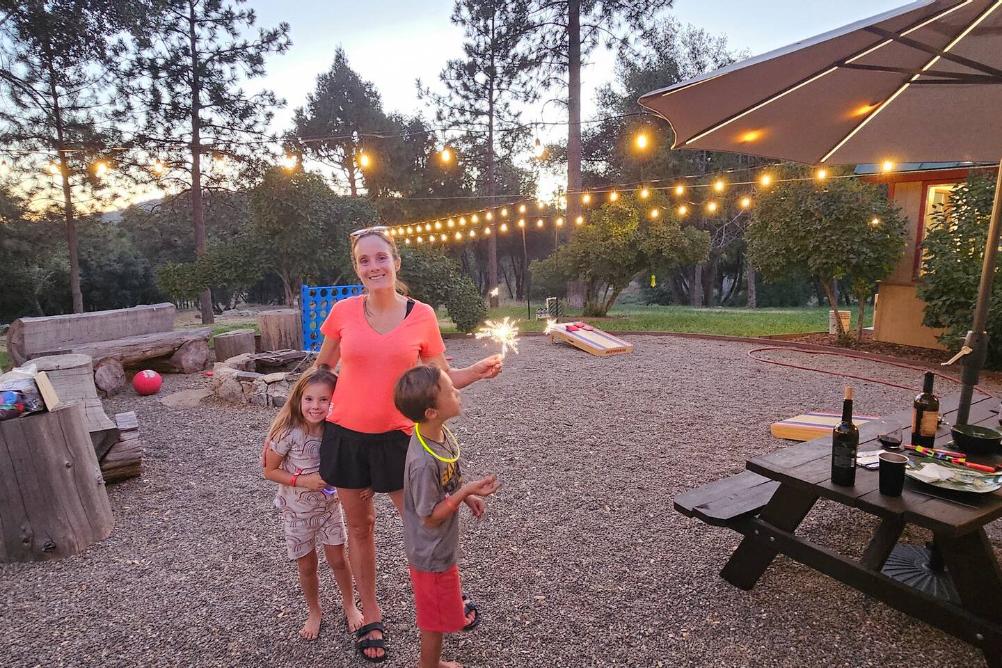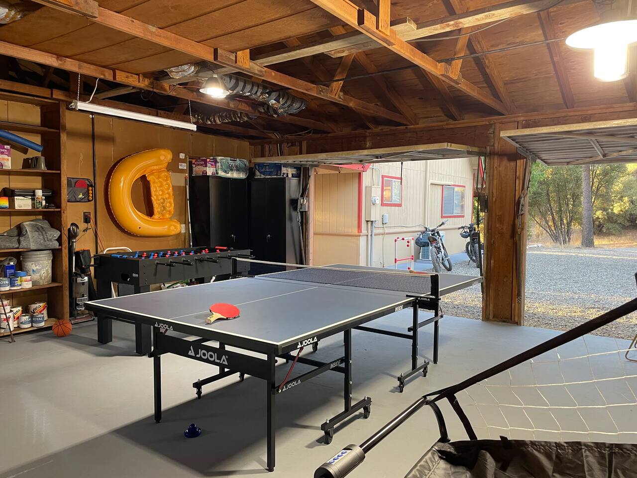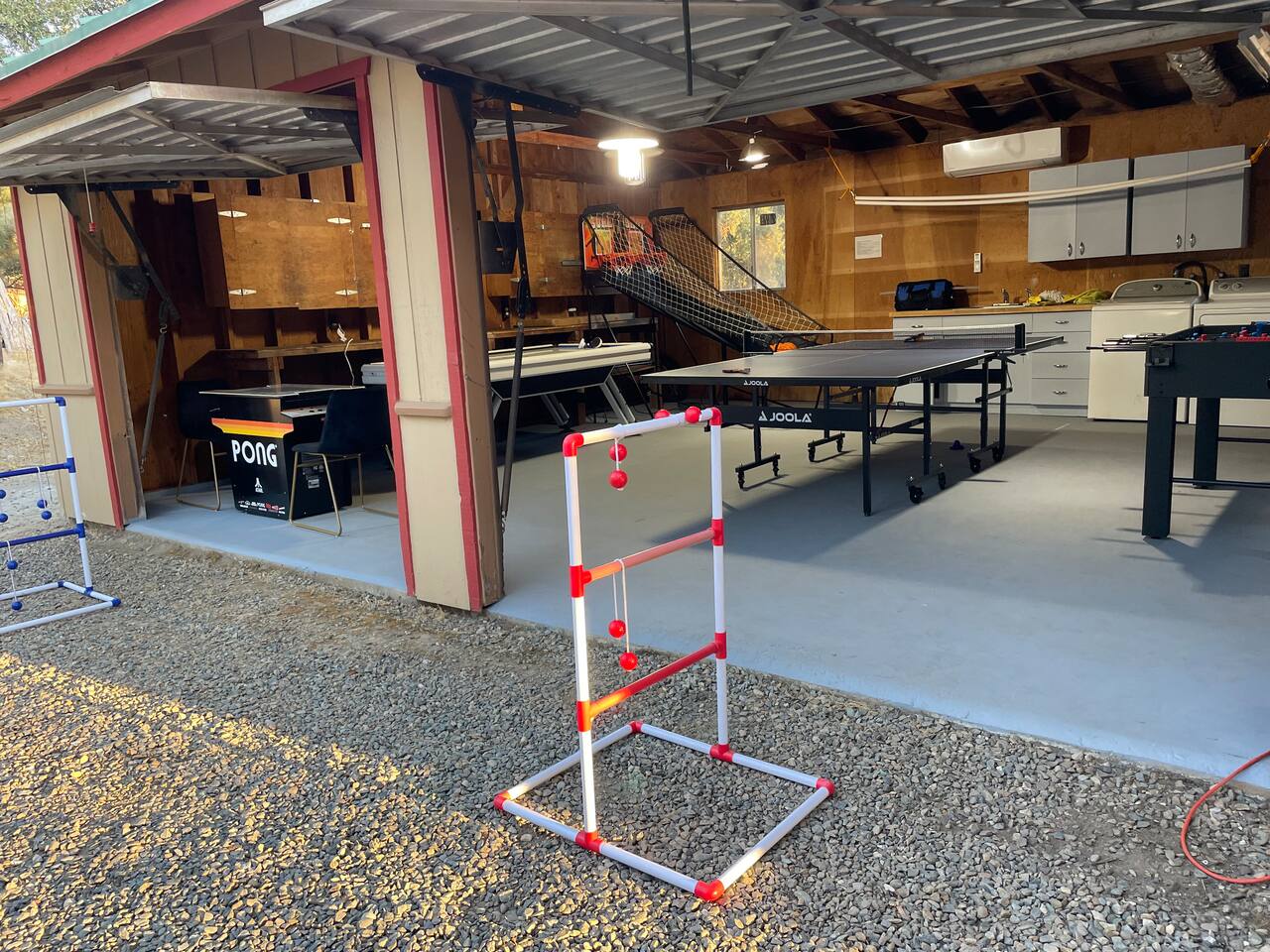 The property consists of two separate units, and while you will have exclusive access to your unit, certain amenities on the property—such as the hot tub, fire pit, yard games, game room/garage, and swingset—will be shared with guests from the other unit. Our goal is to foster a sense of community among those who appreciate the beauty of Yosemite and the surrounding areas. However, if you are seeking complete privacy during your stay, we recommend considering alternative accommodations. Guests at our Oakhurst cabin have full access to the entire property and it’s 5 acres. This includes: The cottage includes one bedrooms and one bathroom, comfortably accommodating up to 4 guests. A fully stocked kitchen for your cooking convenience. Outdoor amenities such as a hot tub, BBQ grill, fire pit, yard games, a gamer's garage, a swing set, a rope swing, a spacious patio with Adirondack chairs, and an electric dirt bike track for adventurous adults. We have a Suron electric dirt bike that is available for rent for an additional fee. The gamer's garage is equipped with a foosball table, arcade basketball, a ping pong table, a dart board, an air hockey table, and a pong video game console table that has 12 games for you to play! There is a washer and dryer located in the garage as well. If you need to do a load of laundry during your stay, just help yourself and kick some butt at ping pong or foosball while it washes!