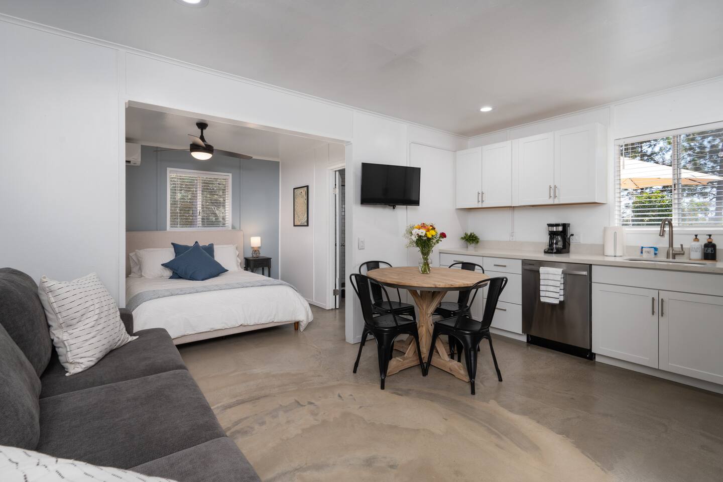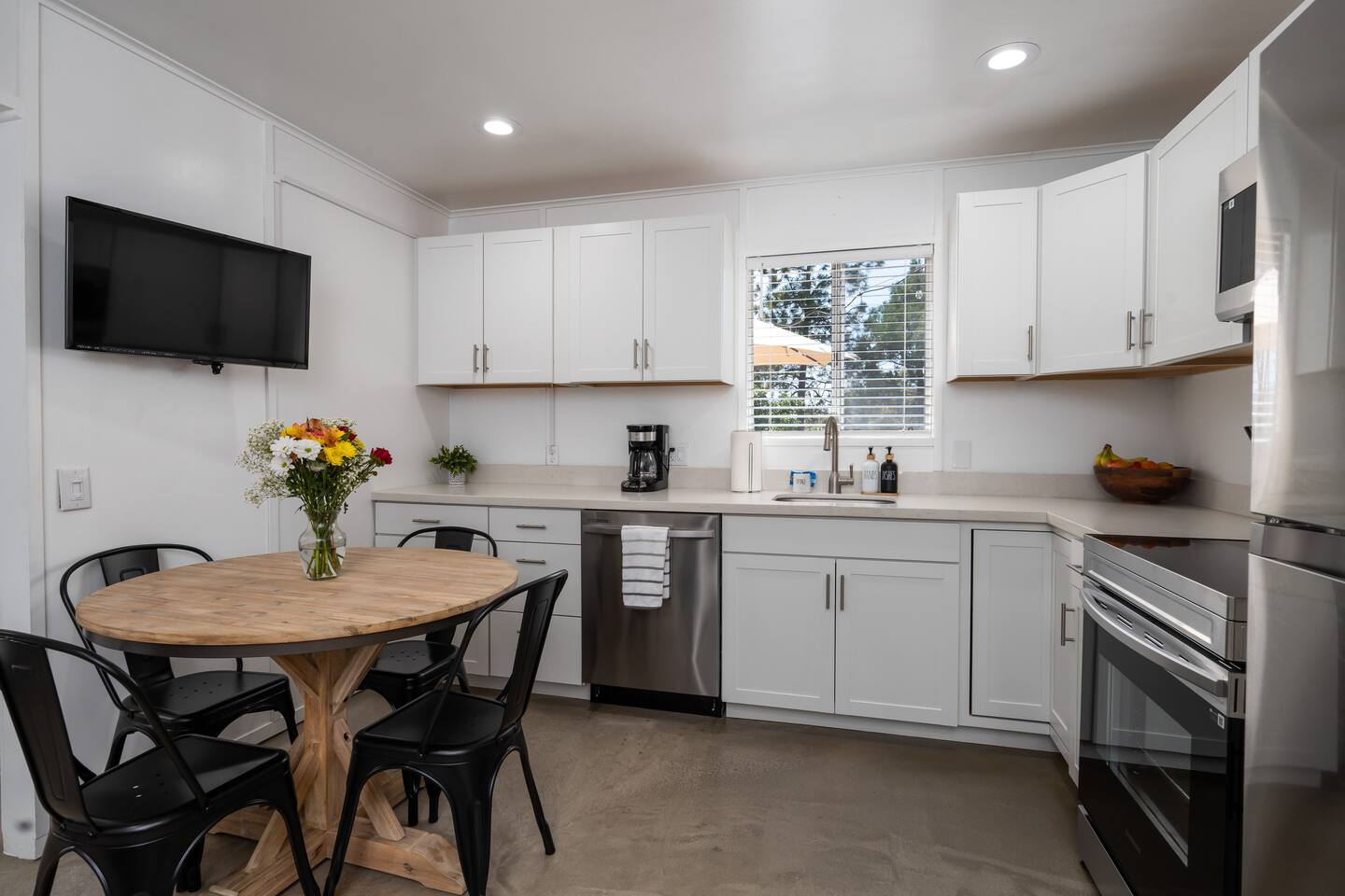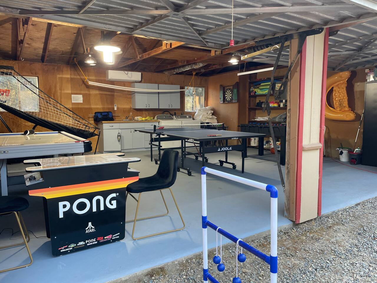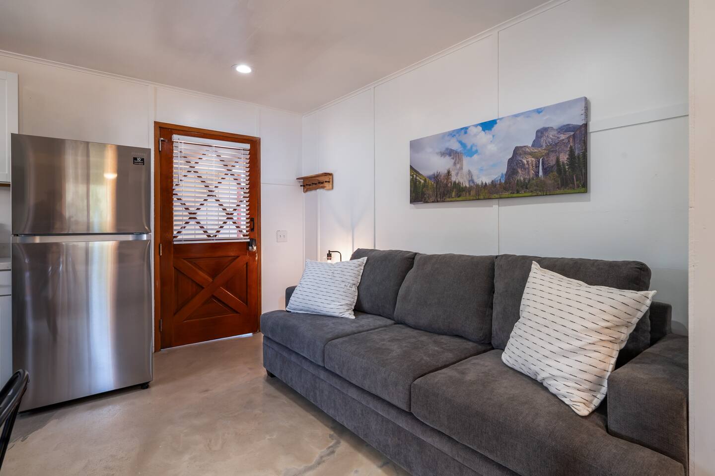 The property consists of two separate units, and while you will have exclusive access to your unit, certain amenities on the property—such as the hot tub, fire pit, yard games, game room/garage, and swingset—will be shared with guests from the other unit. Our goal is to foster a sense of community among those who appreciate the beauty of Yosemite and the surrounding areas. However, if you are seeking complete privacy during your stay, we recommend considering alternative accommodations. Guests at our Oakhurst cabin have full access to the entire property and it’s 5 acres. This includes: The cottage includes one bedrooms and one bathroom, comfortably accommodating up to 4 guests. A fully stocked kitchen for your cooking convenience. Outdoor amenities such as a hot tub, BBQ grill, fire pit, yard games, a gamer's garage, a swing set, a rope swing, a spacious patio with Adirondack chairs, and an electric dirt bike track for adventurous adults. We have a Suron electric dirt bike that is available for rent for an additional fee. The gamer's garage is equipped with a foosball table, arcade basketball, a ping pong table, a dart board, an air hockey table, and a pong video game console table that has 12 games for you to play! There is a washer and dryer located in the garage as well. If you need to do a load of laundry during your stay, just help yourself and kick some butt at ping pong or foosball while it washes!
